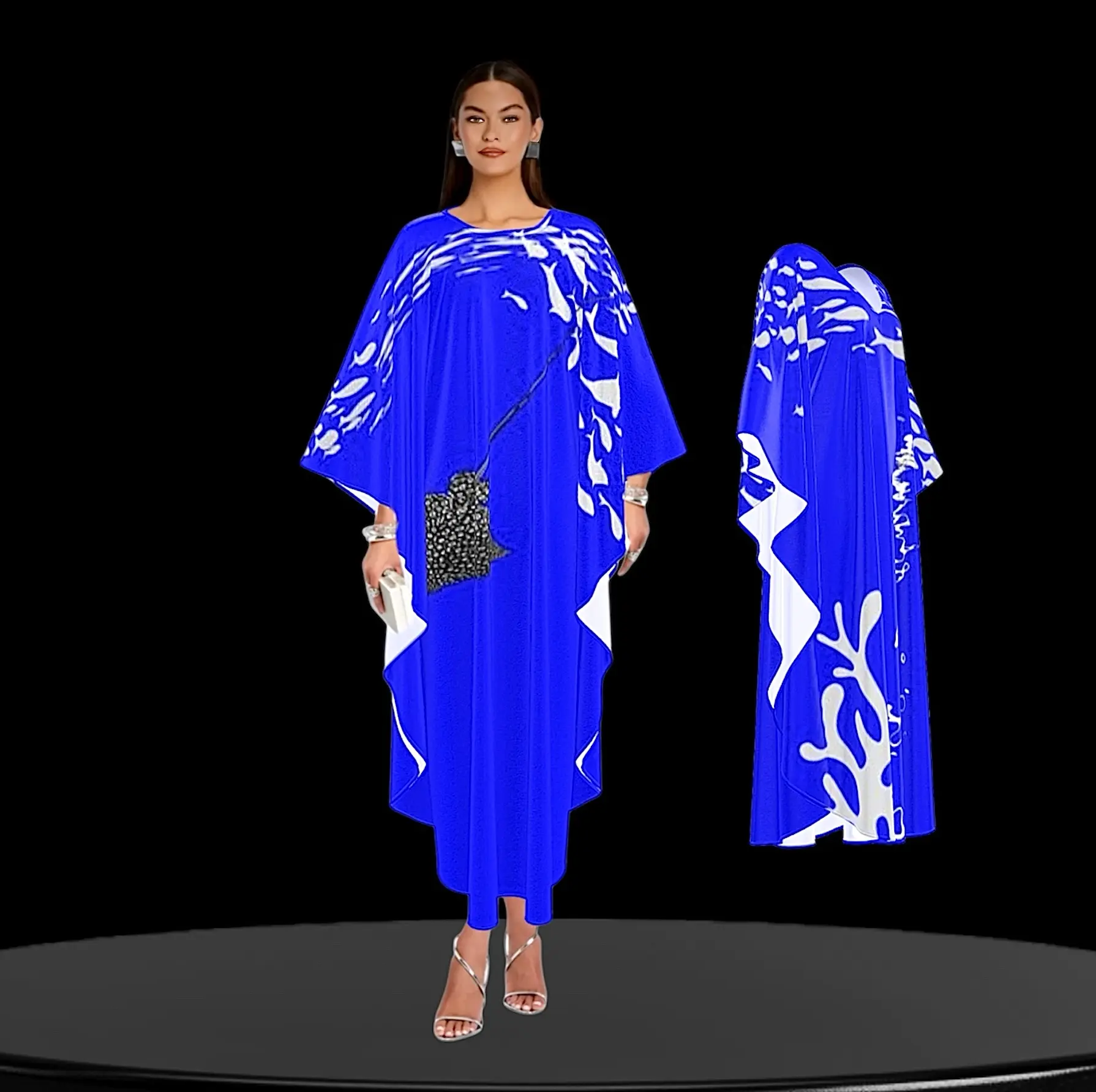 “Déjate envolver por la esencia del verano con nuestro Caftán ‘Brisas del Mediterráneo’. Su vibrante azul, que evoca las aguas cristalinas de la Costa del Sol, se fusiona con un diseño abstracto y etéreo, perfecto para los atardeceres y momentos de relax junto al mar. Este caftán es la definición de comodidad y estilo sin esfuerzo, ideal para pasear por el paseo marítimo o disfrutar de una cena bajo las estrellas. Siente la brisa y vive la magia mediterránea en cada movimiento.”