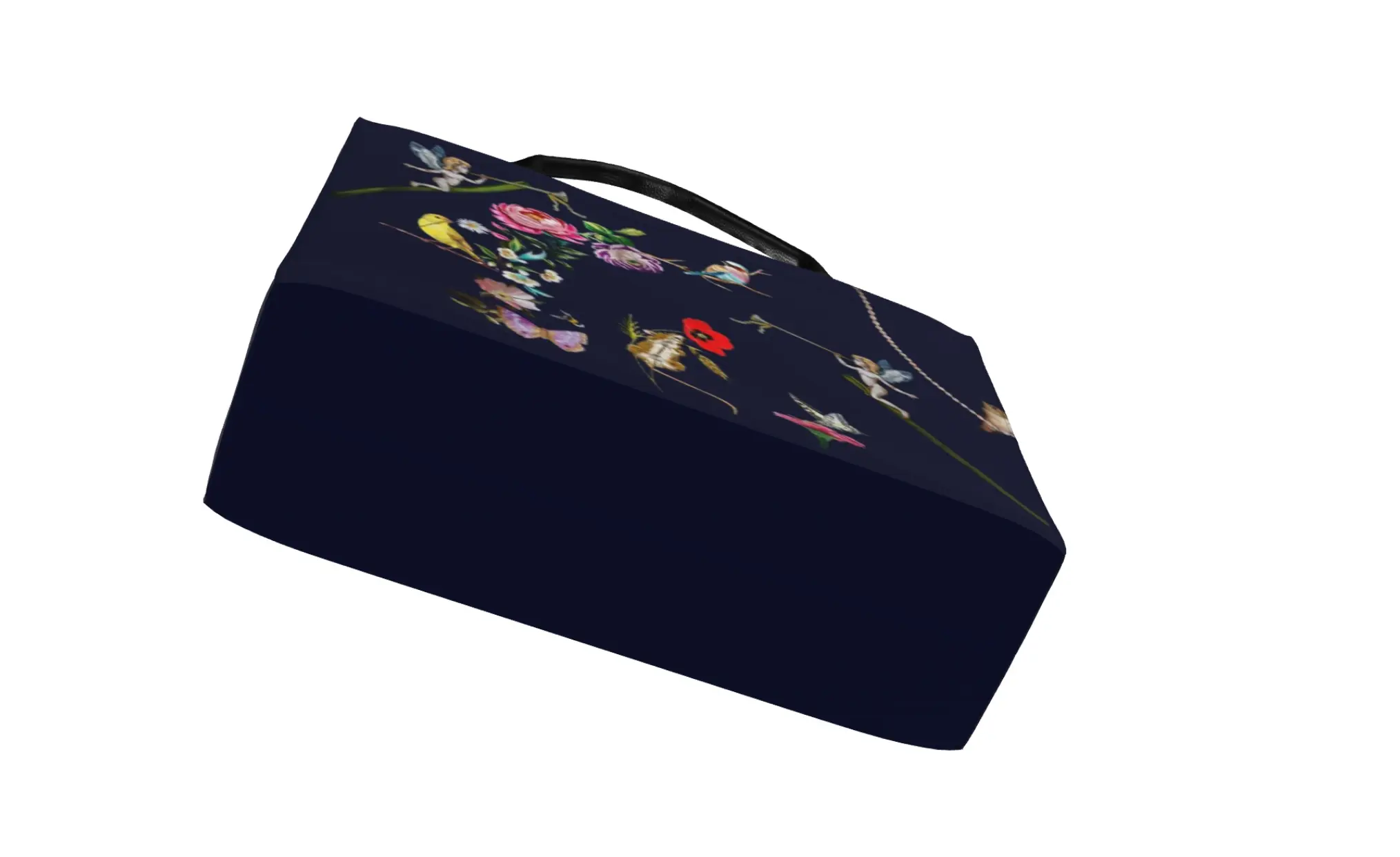 - “Divine Flutter in Bloom” Exclusive Design: Full-color graphic print on both sides with motifs of hummingbirds, flowers, and cherubs.