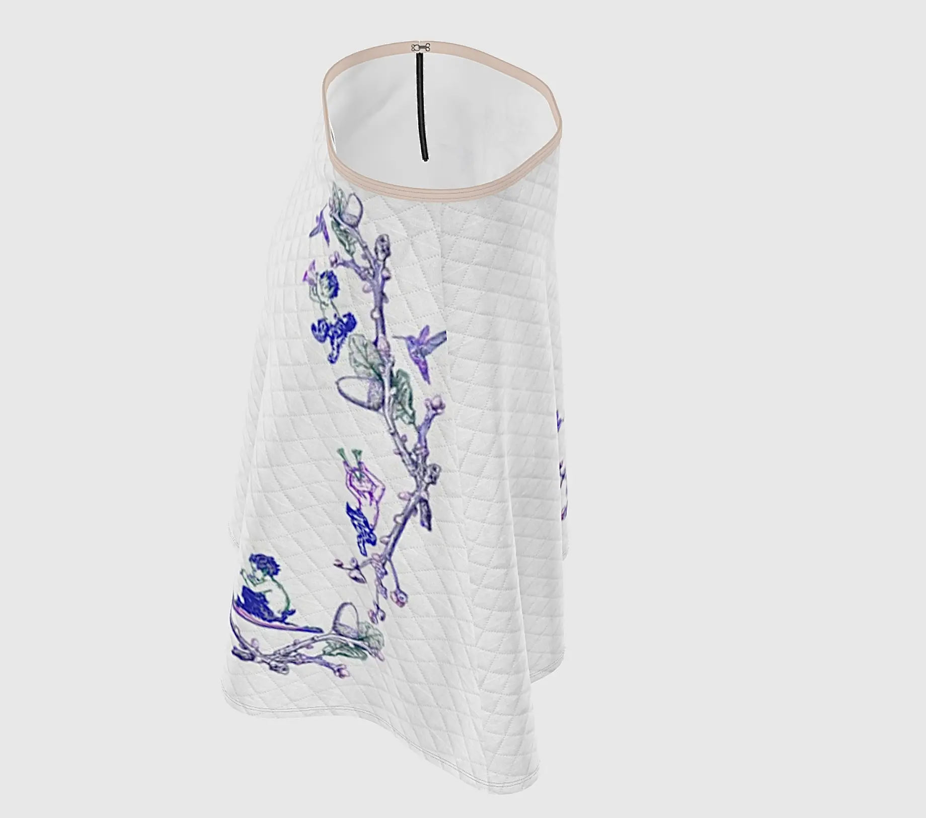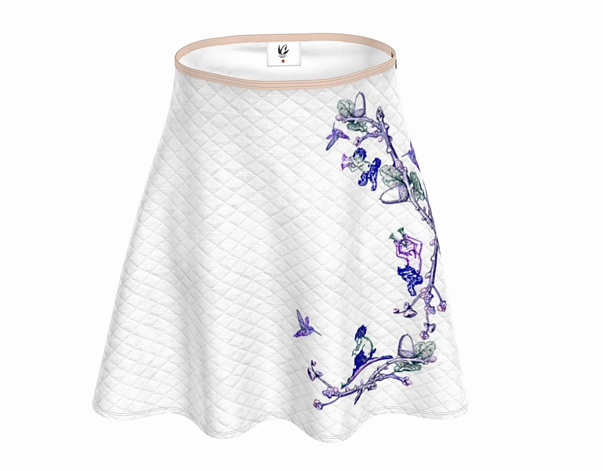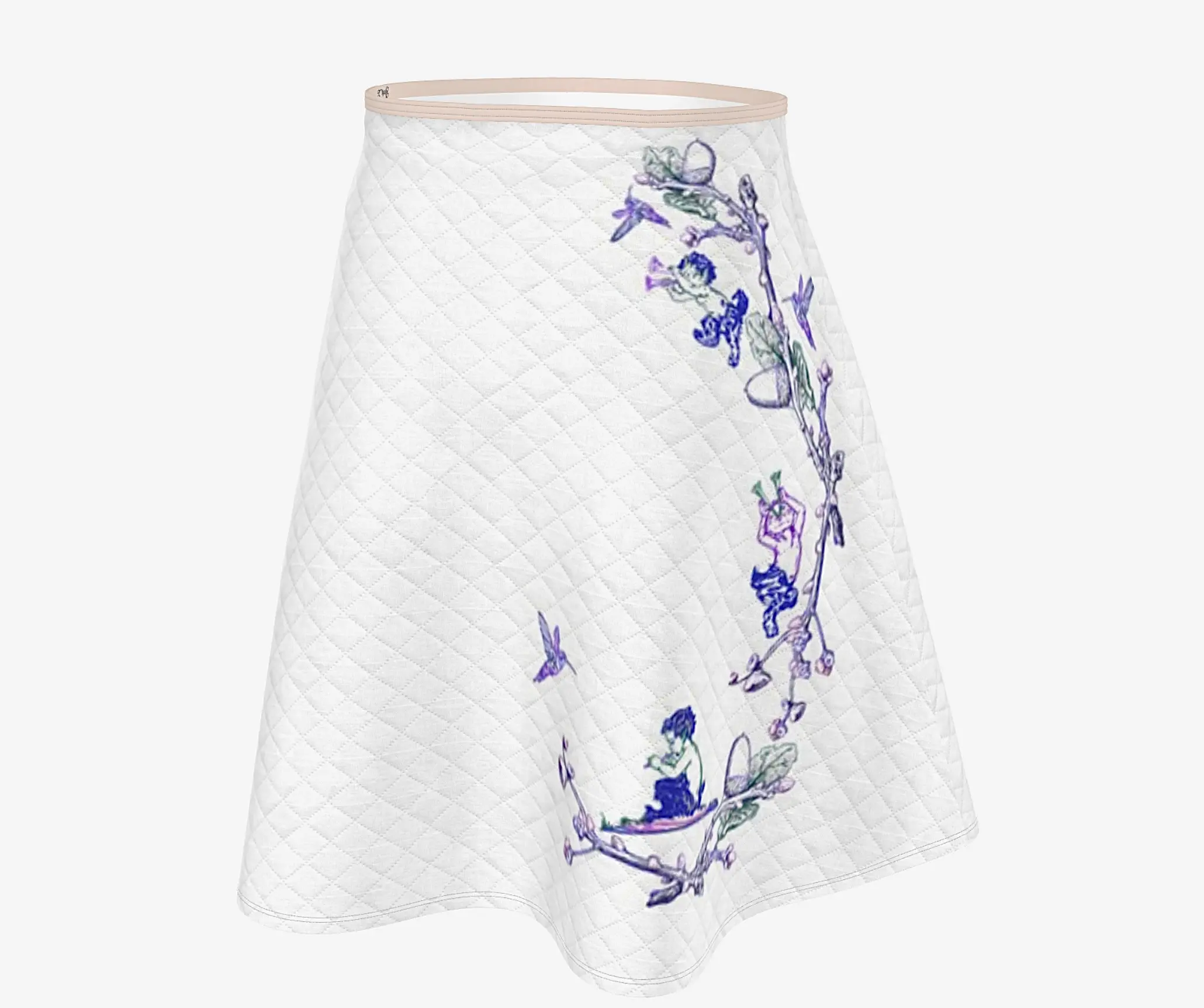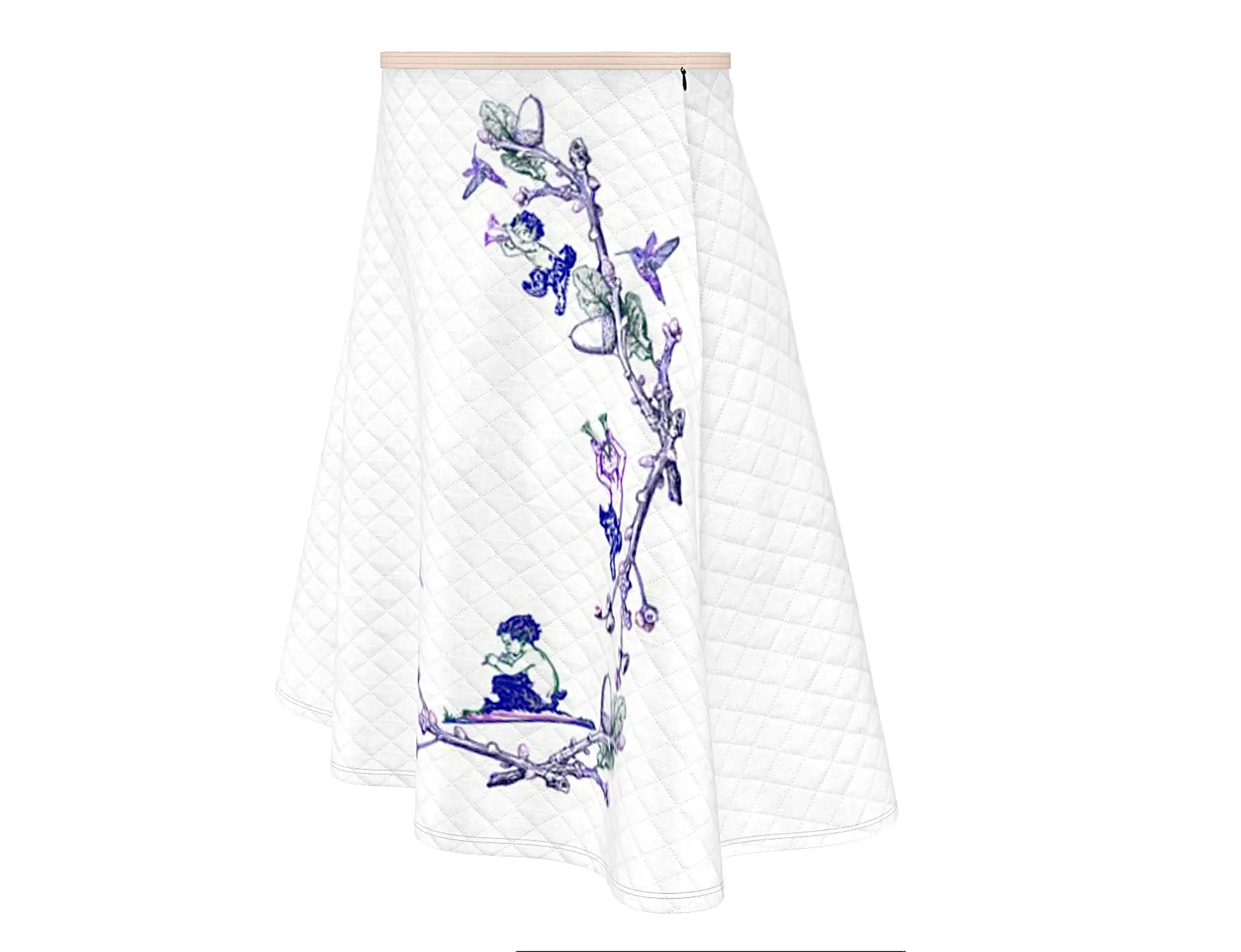 “Ether” suggests something celestial or intangible, and “Sunrise” marks the beginning of a magical day where fauns and hummingbirds awaken in a dreamlike garden. This is the beautiful story that Inma de la Riva captures for us in this skirt.