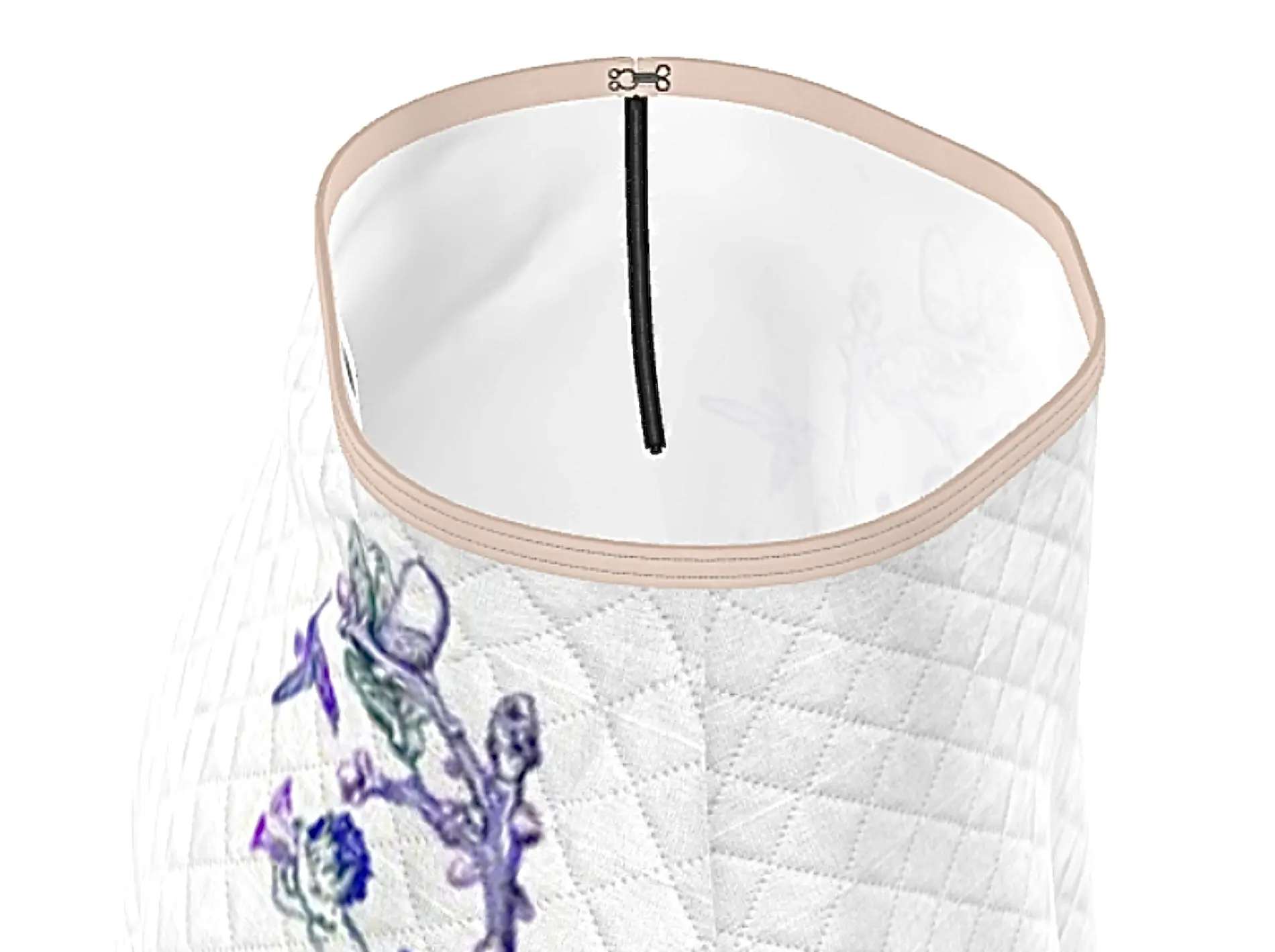 • Zipper: Hidden with a hook-and-eye closure.