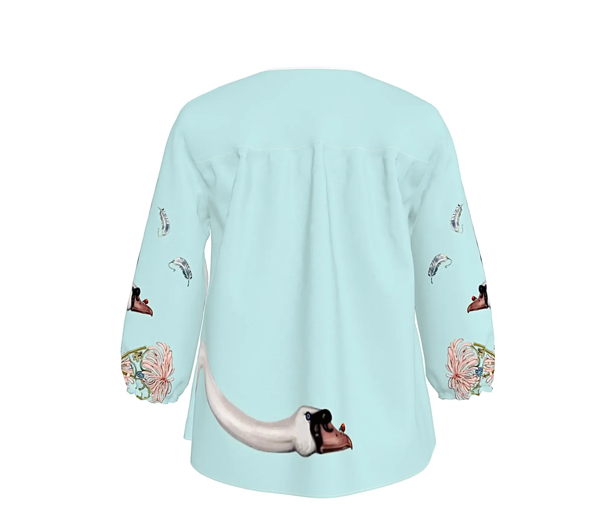 Capture the serenity of the lake with our swans blouse. Its loose design and unique print make it ideal for a casual chic look or for adding a touch of art to your day.