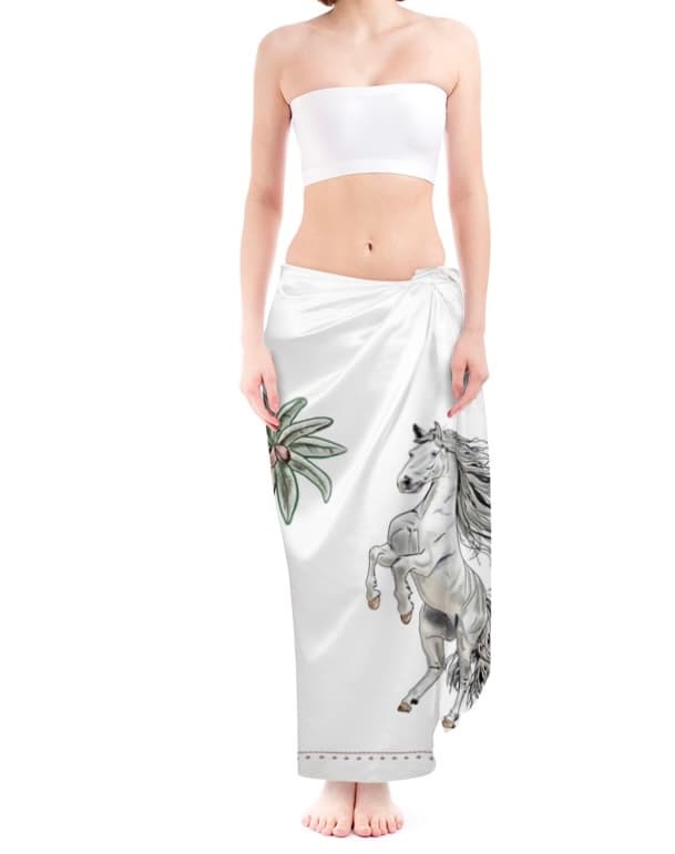 In essence, the “White Horse” pareo skirt tells a story of wild beauty, freedom, and the magic of faraway destinations, ideal for those seeking a garment that evokes both adventure and sophistication.